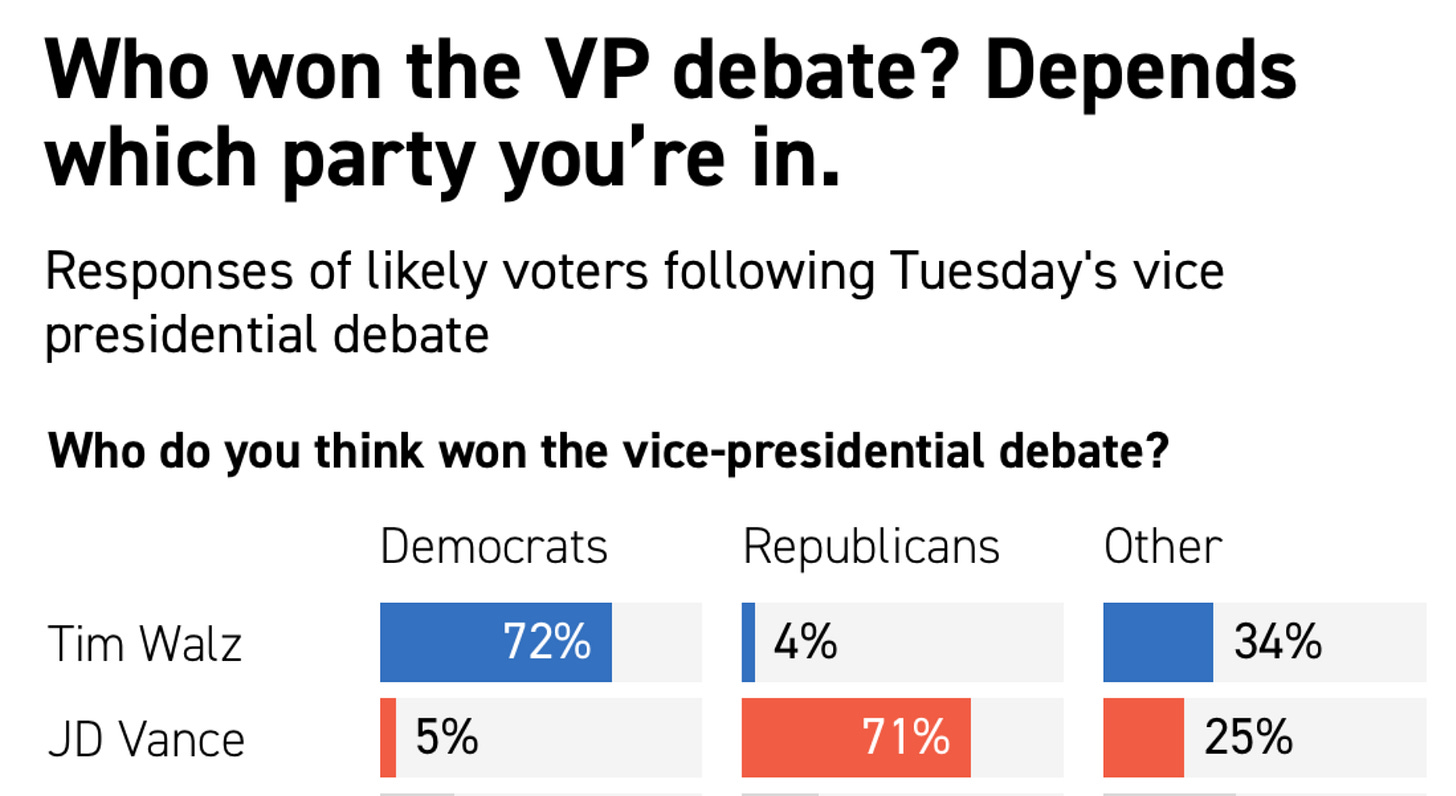 Don’t believe me? Ask the polls. While the view of who ‘won’ the debate was mostly on party lines, Walz won overwhelmingly with those independents and Black and Brown voters.