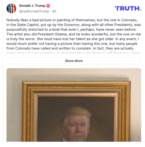 So the guy knows nothing about his cabinet members texting randos classified war plans, or about the missing soldiers he allegedly commands…but he took time to think about a picture hanging 1,656 miles away. YES I CHECKED.