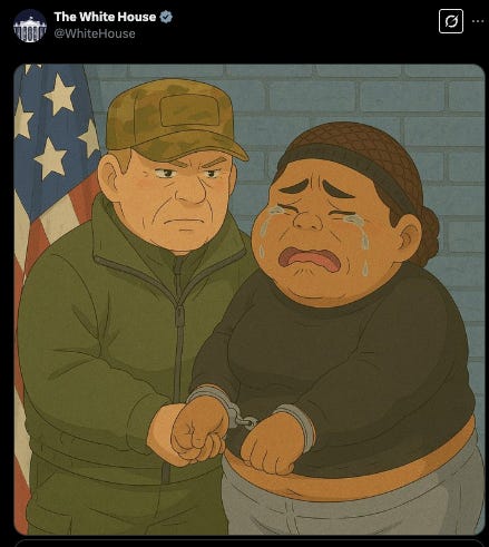 Speaking of gross and dehumanizing. The official account for the White Supremacy House is posting cartooned images of people they are abusing.