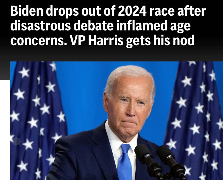 President Biden seemed to somewhat understand this concept, albeit too late (and also what is he doing now?) when he stepped down from the race and endorsed Vice President Harris.