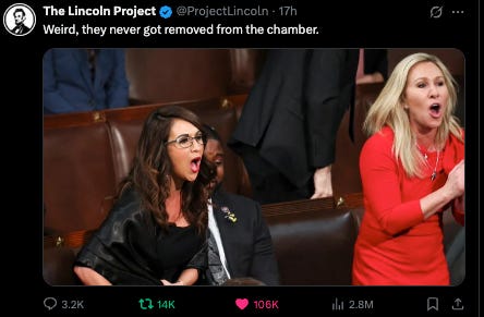 But how wild is it that we have a president with 34 felonies and multiple indictments and crimes just…wiped away?