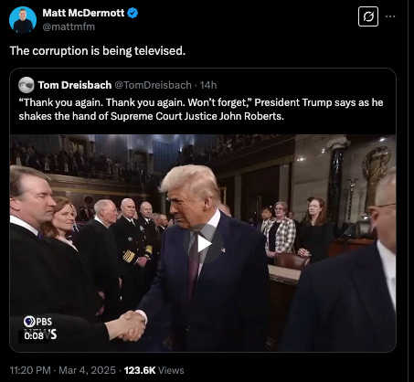 Another piece that went unnoticed but not by all of us was the open love from the orange one and Chief Justice Roberts. He, in the open, thanked him for all of his victories.