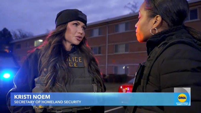 World renowned puppy slayer, Kristi Noem, decked out in full tactical gear to “assist” raids in the super super dangerous Arlington Virginia. Yes, THAT Arlington. The same Arlington that has a recognized as one of the SAFEST counties in America. Don’t believe me…ask the dishes: