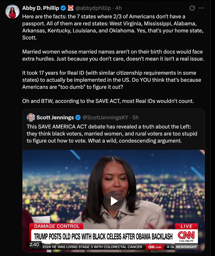 The SAVE Act is a poll tax. Pure and simple. And in case you forgot, poll taxes were outlawed under section 10 of the Voting Rights Act of 1965.
