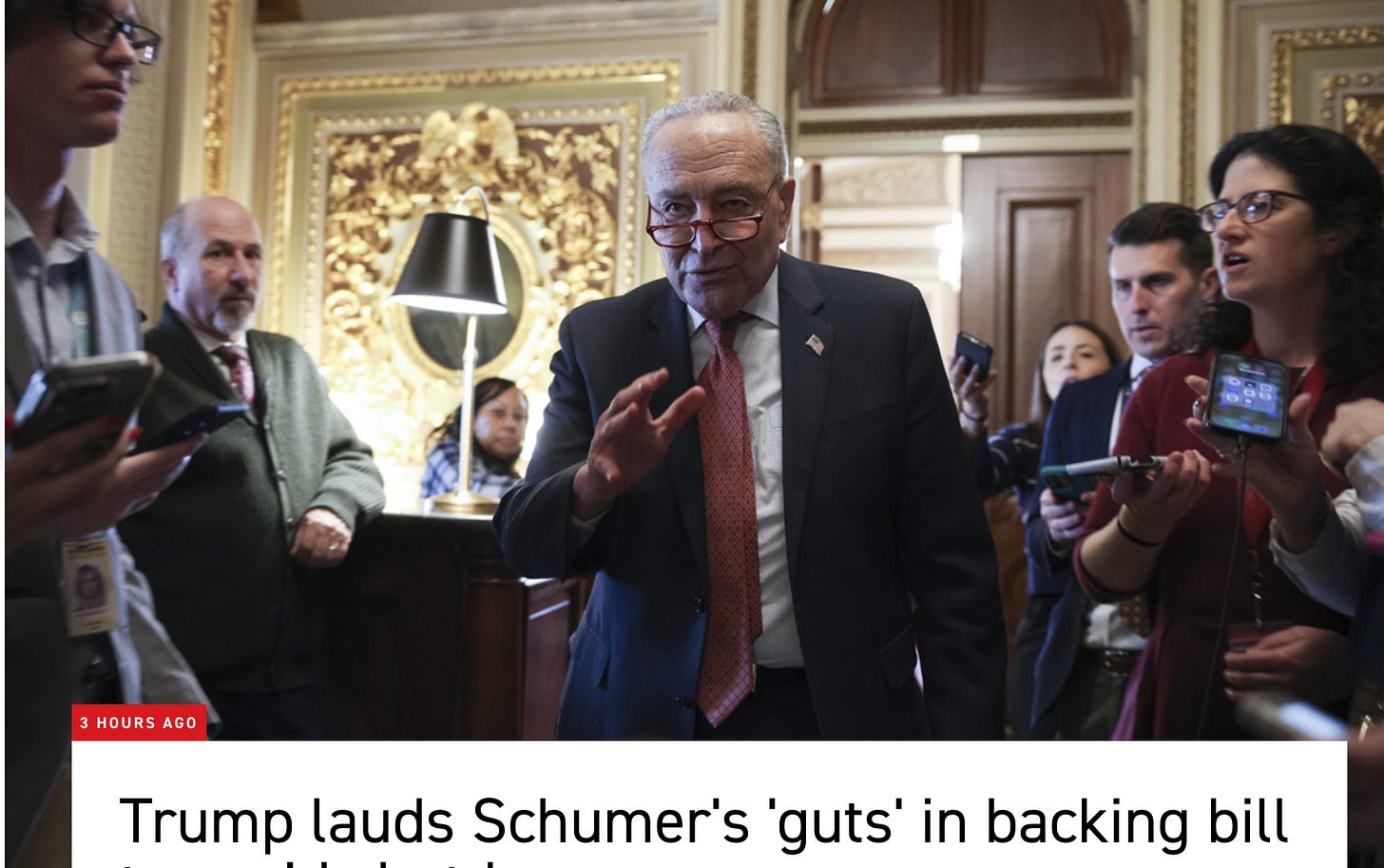 Shocking some—but not those of us who pay attention— minority leader Senator Chuck Schumer announced he would be voting in favor of the bill.
