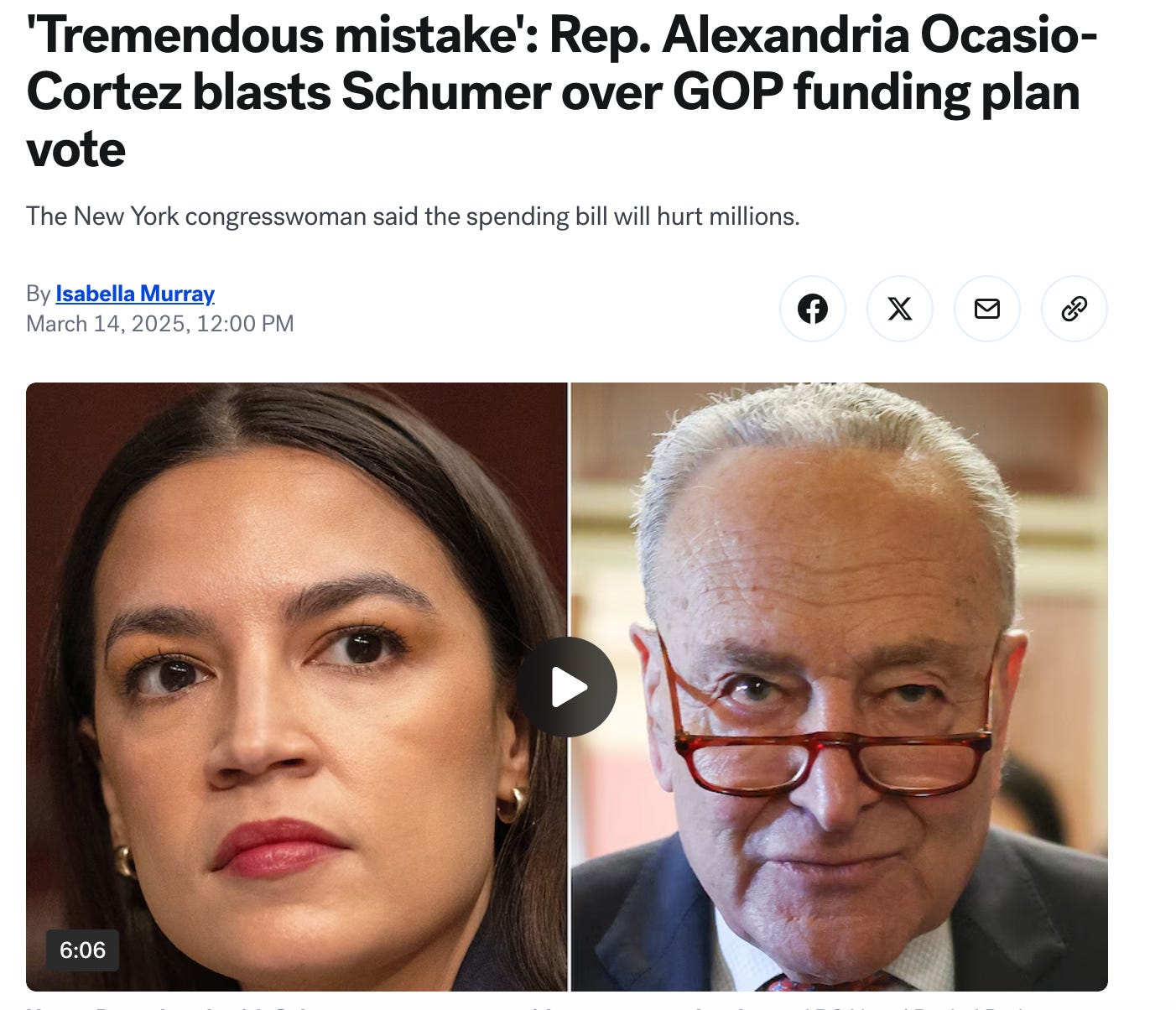 AOC has been floated as a potential replacement for Schumer, given his lack of a spine in moments of needed leadership.